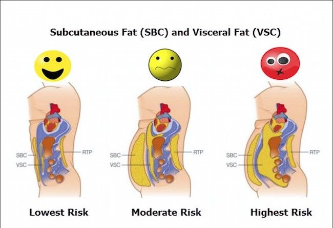 A big belly is constituted of both visceral and subcutaneous fat! They are directly related: an increase in subcutaneous fat is also indicative of an increase in visceral fat. For this reason, an increased waist line is seen as a health risk and is telling of impending health complications.