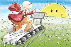 Hedonic adaptation is almost the antithesis of this. The word treadmill perfectly describes the state of being in motion, but ending up right where you started... there is no gain in happiness or well being.